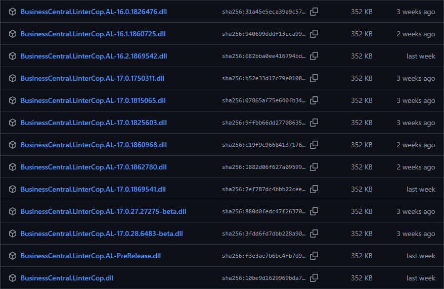 Right now, we’re generating nearly 50 assets for every LinterCop release, because each one is compiled against a specific AL Language build. The AL version you use in VS Code, your CI pipeline, or anywhere else must match exactly with the LinterCop .dll it was built for.